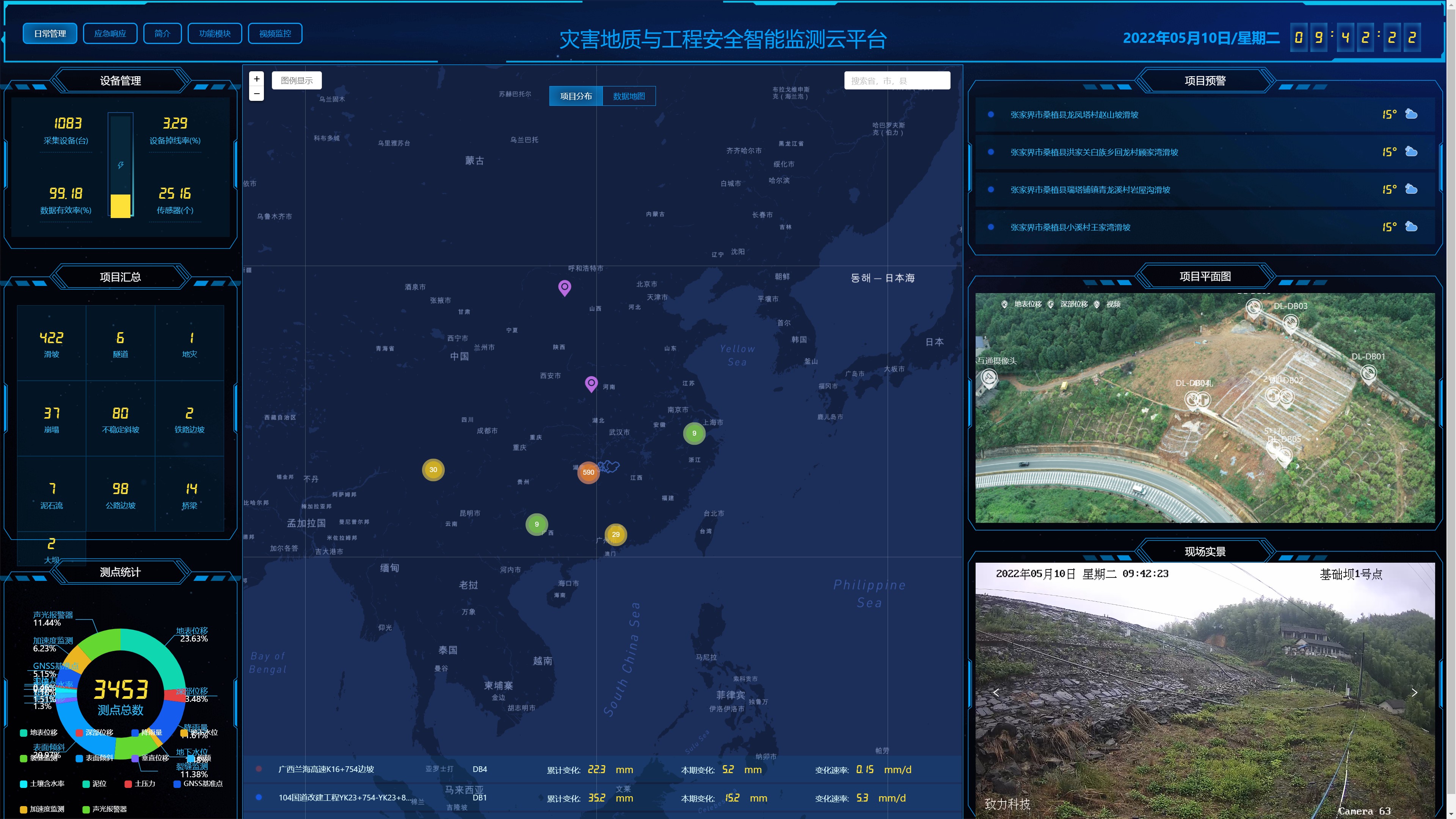 目前,致力云平臺已在全國布設(shè)監(jiān)測點3453個,覆蓋了全國20余省的400余個邊坡、橋梁、隧道、基坑、礦山、大壩、尾礦庫、棄土場等,累計發(fā)布準確有效預(yù)警信息100余次,多次成功預(yù)警項目險情,科學(xué)指導(dǎo)應(yīng)急處治,有力保障了人民生命財產(chǎn)和社會安全。
