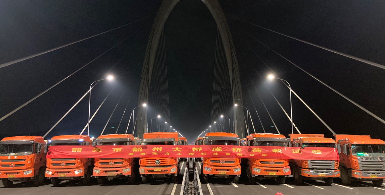 2月1日晚,伴隨著轟鳴的聲音,24輛滿(mǎn)載的渣土車(chē)在有序指揮下分批次開(kāi)上了韶州大橋,成為第一批上橋的“嘉賓”。經(jīng)過(guò)2個(gè)夜間通宵辛苦作業(yè),由湖南致力工程科技有限公司實(shí)施的“粵北第一橋”韶州大橋荷載試驗(yàn)順利完成。